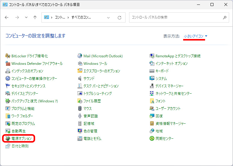 「電源オプション」をクリックしてください。